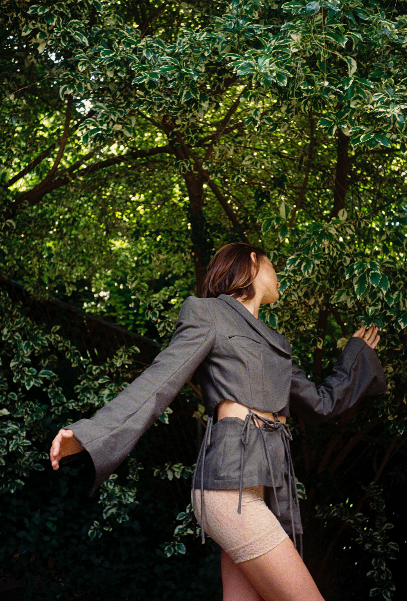 these designs draw inspiration from the visual echos represented in nature and how they radiate from intentional points of density. with this in mind, these garments use fabric manipulations to mimic such movements, in a way that is purposeful by accentuaing the body.