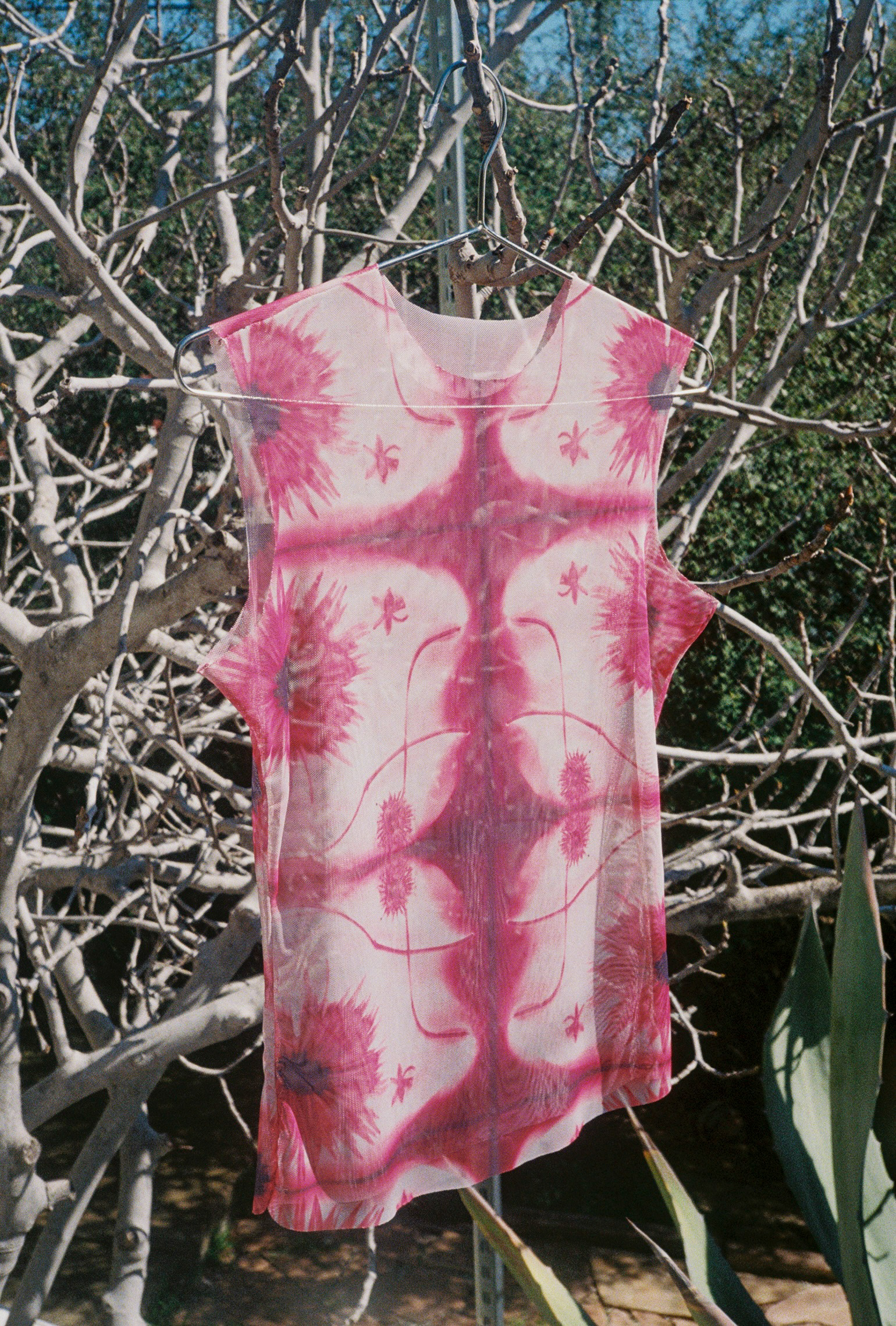 naaliyah’s first launch sold commissioned mesh tops, each of which has its own unique pattern inspired by a personality quiz the customer submits. with the results of the quiz, fashion designer nicole andrews and floral designer hannah tacher gather flowers that best represent the individual customer and architect a unique pattern to be placed on their top. they take into account factors such as shape, movement, density, and color. inspired by synesthesia, color theory, astrology, and psychology, nicole and hannah combine their artistic intuition to take the customer’s input and deliver a visual surprise that makes them feel seen, understood, and celebrated.
