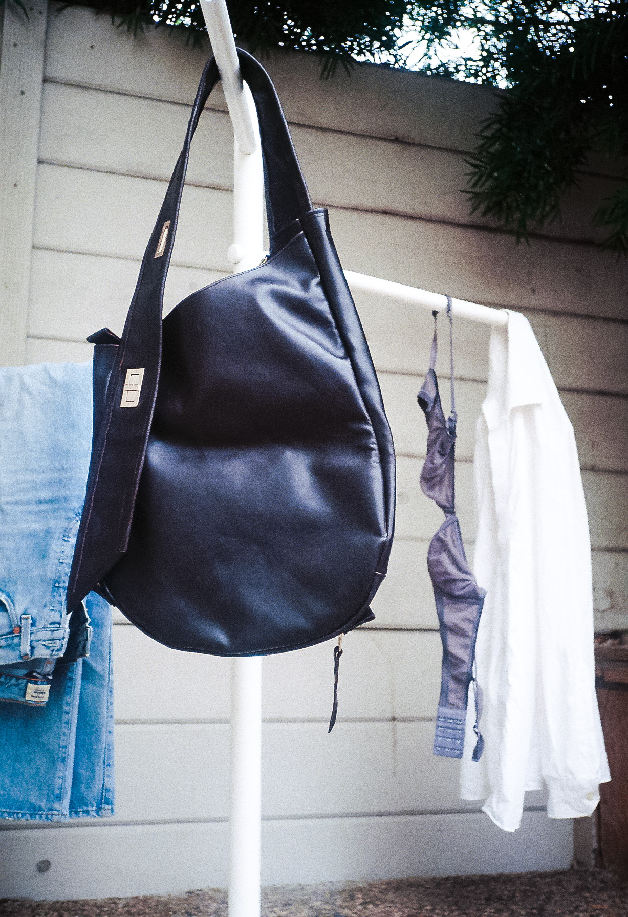 product photography for a bag designed + handmade by nicole - inspired by the casual nature of outdoor drying racks and the movement of garments outdoors. the set design was inteded to be minimalist and complementary, but not distracting - rendering the bag to be one that seamlessely fits in your everyday wardrobe.